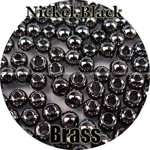 These brass beads are solid, one side hole larger than the other, which makes them easier to pass through the hook bend.